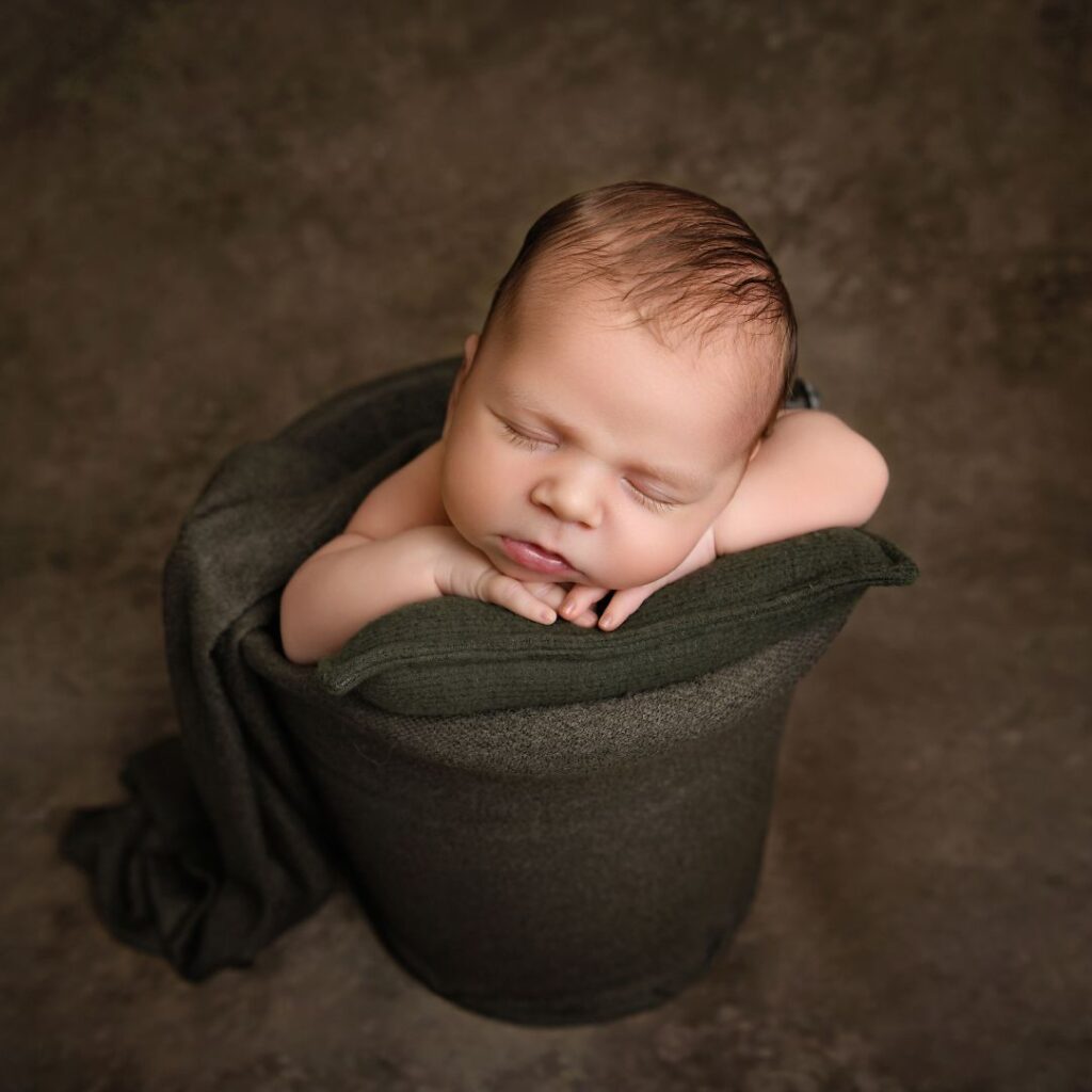 My newborn photography studio in Glen Mills, PA—convenient to the Main Line, Philadelphia, West Chester, Media, and Wilmington—is fully equipped with curated props, wardrobe options, and custom set designs to create beautiful portraits of your baby.