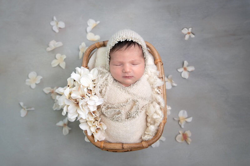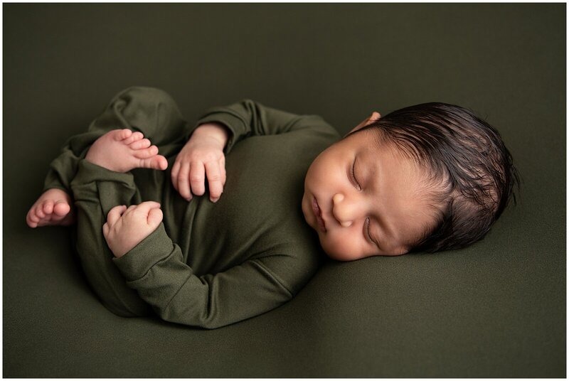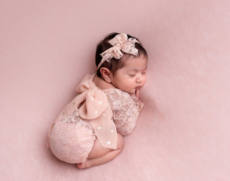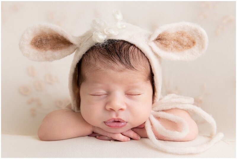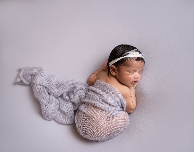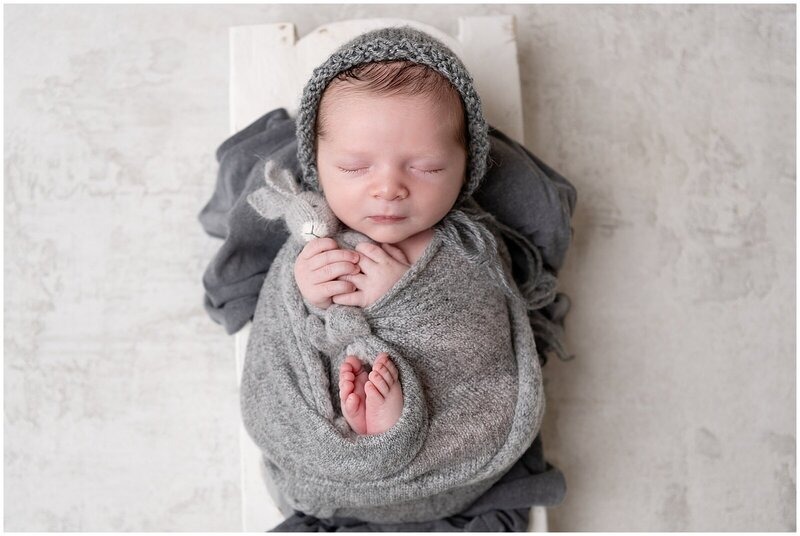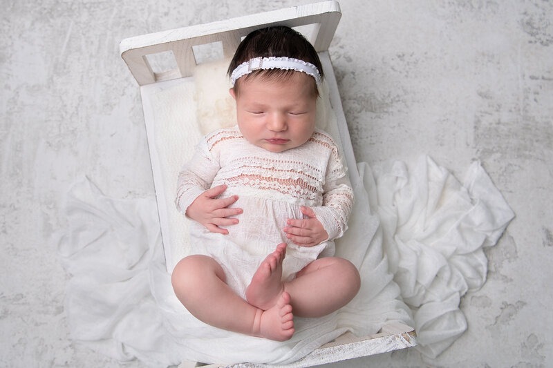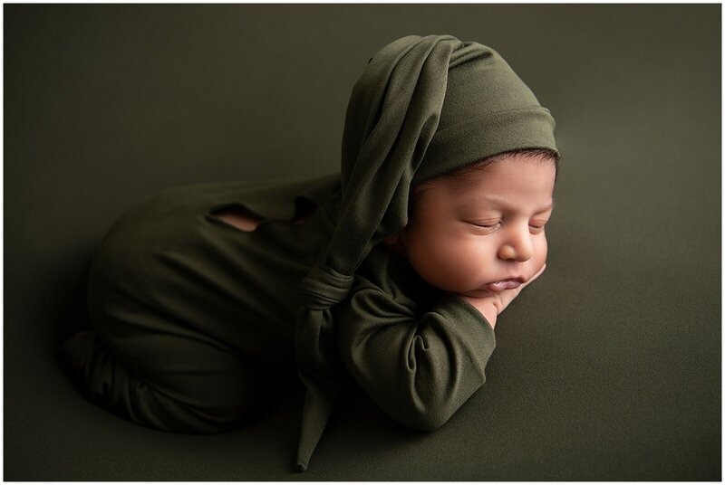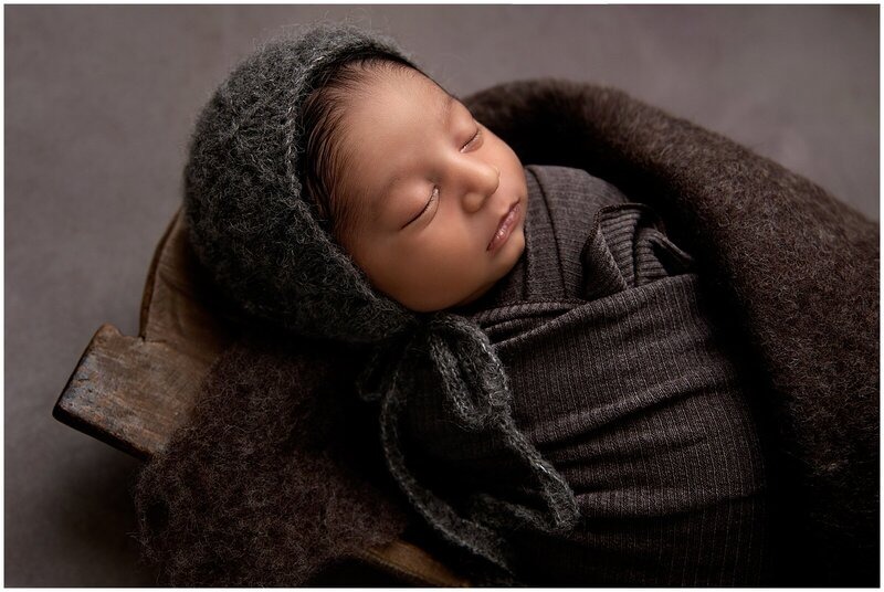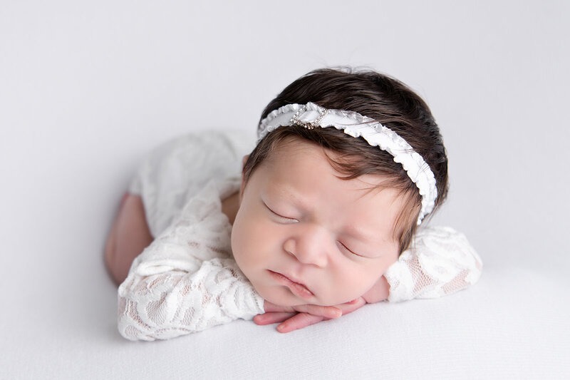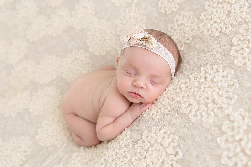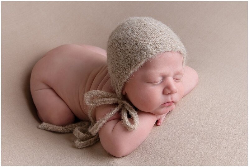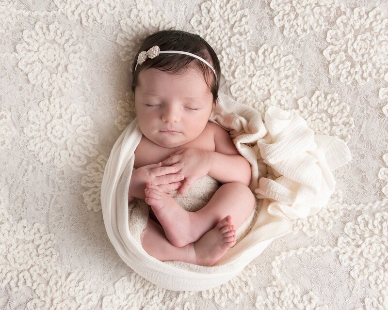 Newborn sessions are thoughtfully guided and designed to create refined portraits in a calm studio environment."